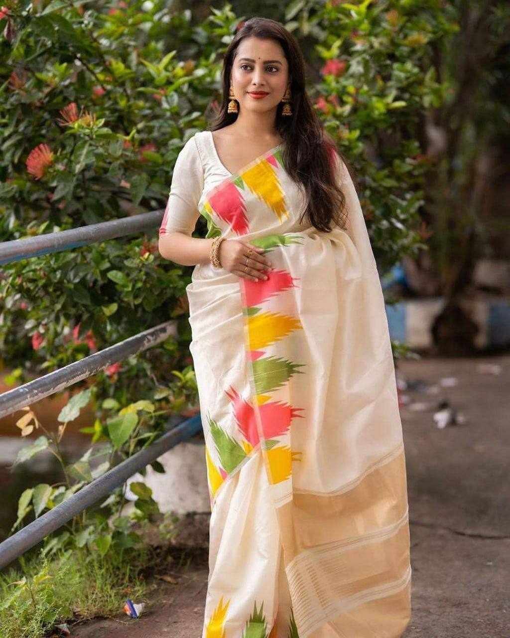 KP 6042 WHITE SOFT LICHI SILK SAREE